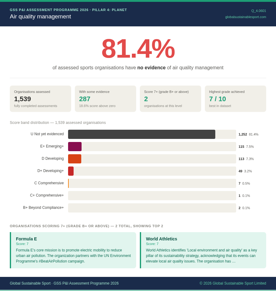 - 81.4% of assessed organisations have no evidence of air quality management